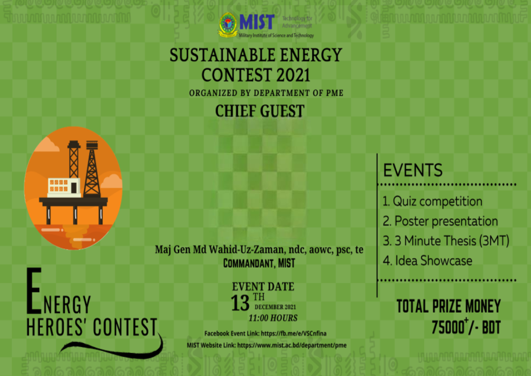 Sustainable energy contest was organized by PME Dept in order to increase the existing knowledge by having different segments such as quiz competition, Poster Presentation, 3-minute Thesis and Idea Showcasing. The students were awarded and appreciated for their hardwork and intensive knowledge shari... Read More