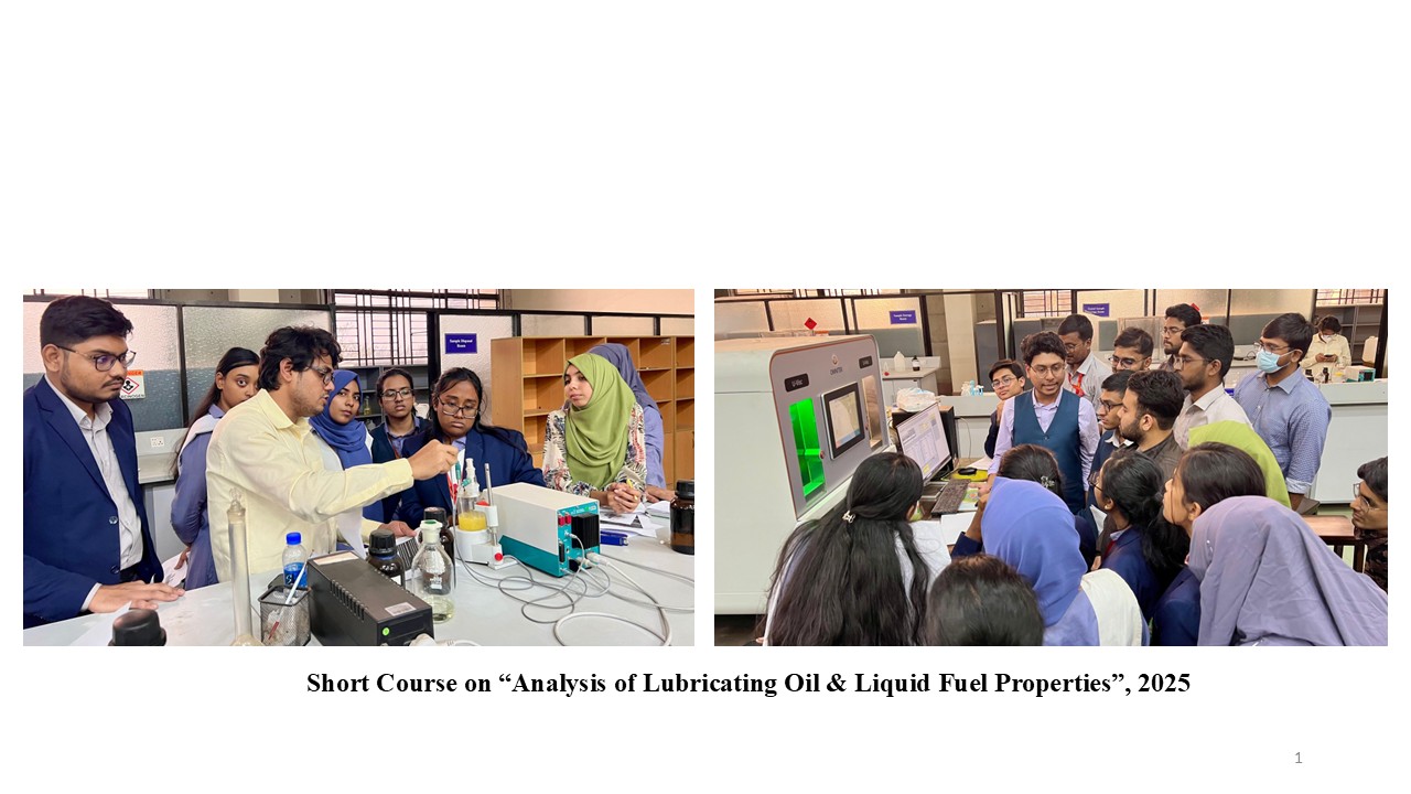Short course on "Analysis of Lubricating Oil and Liquid Fuel properties" was arranged by PME Dept. This short course aimed to reflect on to provide knowledge to determine different properties of lubricating oil and liquid fuel oil properties. A total of 26 participants including students a... Read More