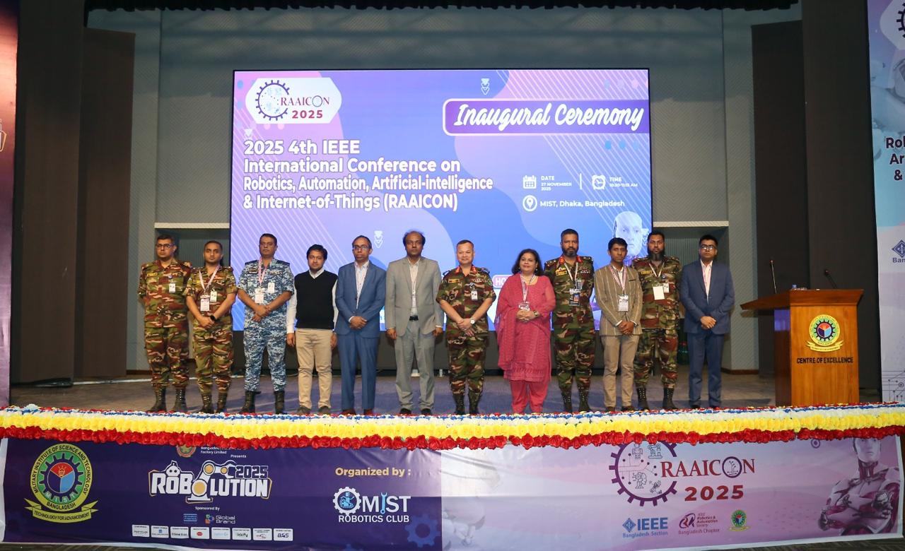 The Military Institute of Science & Technology (MIST) kicked off Robolution 2025 and the 4th IEEE RAAICON Conference with a grand inauguration on 27 November 2025. Maj Gen Md Nasim Parvez, BSP, ndc, afwc, psc, Commandant of MIST graced the occasion as chief guest.